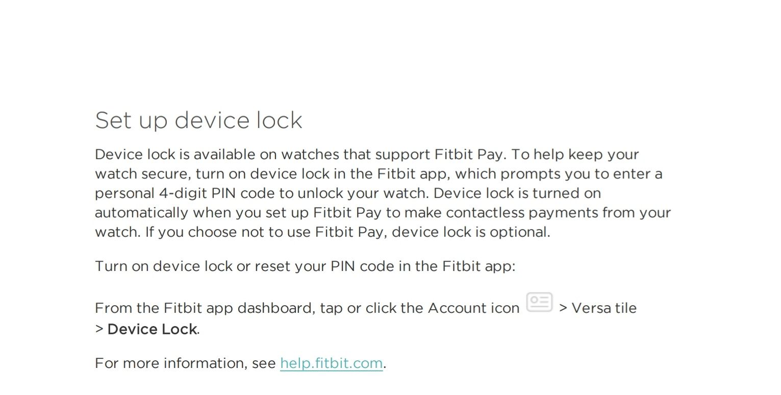 To help keep your fitbit device secure, turn on the device lock in the fitbit app.